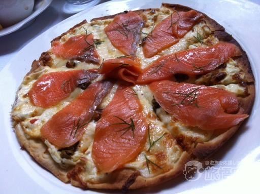 スモークサーモンピザは、クリームチーズベースのソースがスモークサーモンと合います。