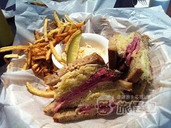 レアなお肉が何層にも!サワークラウトの酸味が合います。